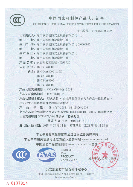 JB-TG-AY8000型(xíng)火(huǒ)災報警控製器(聯動型(xíng))是可與本公司生產的AY8000係列產品配套使用,
